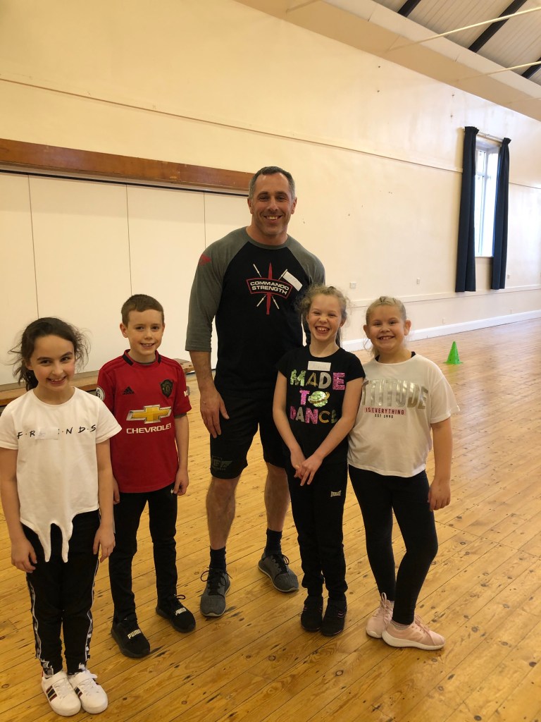 The group session I seriously had to put a lot of thought into it. Main things which I had to consider: type of venue, children’s ages and abilities, type of exercises, equipment and also the health and safety side of things. A good friend of mines girlfriend is a PE teacher so I spoke to her about all of the above and she guided and steered me in the right direction. So after 3/4 weeks of planning sourcing my own kit, booking the local village hall and Louise drafting 4 children inn from the local primary school we conducted the session.
